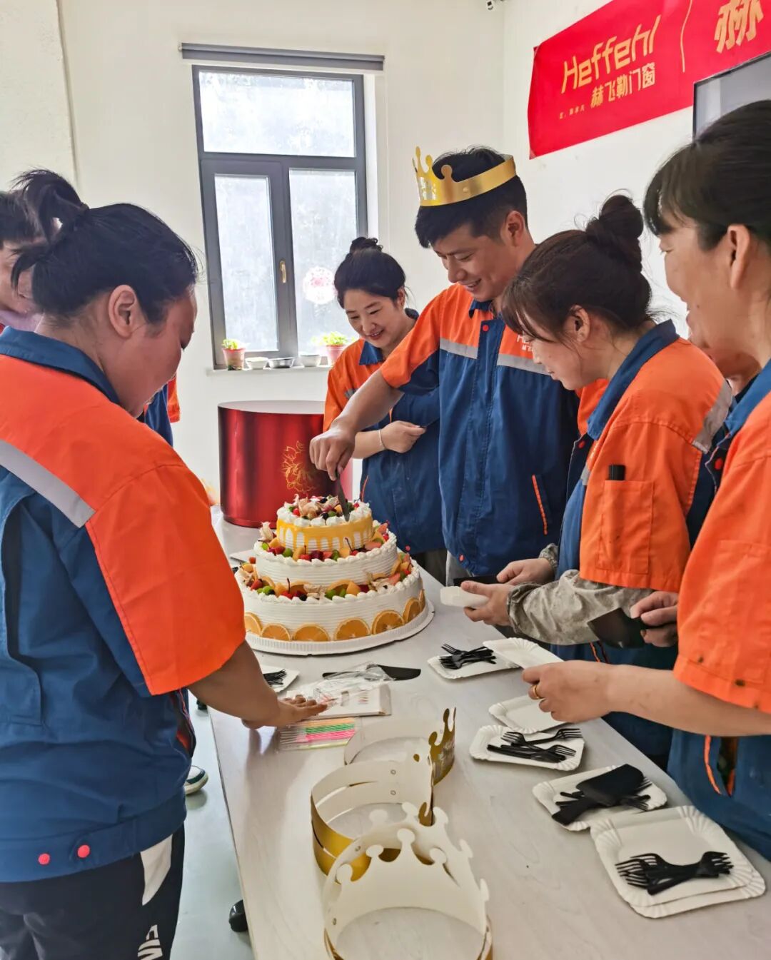 让我们一起回顾,那些被定格的欢乐瞬间吧!2025年9月29日,在赫飞勒门窗生产基地,烛光闪闪,笑声阵阵,耳畔回响着熟悉的生日旋律。
